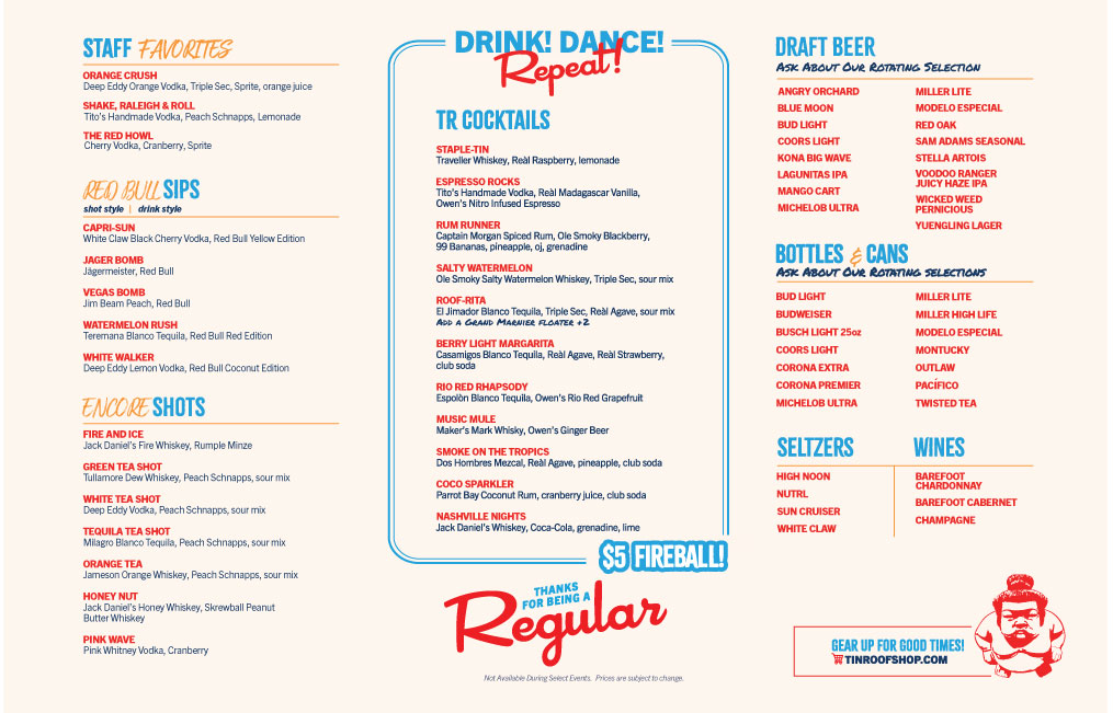 Sat: $4 PBR, $5 Pink Whitney & Fireball, $4 Jello Shots